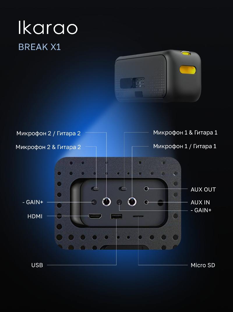 | Комплектация | караоке система; кабель для заряда; микрофон - 2 шт; ремень; документация. |