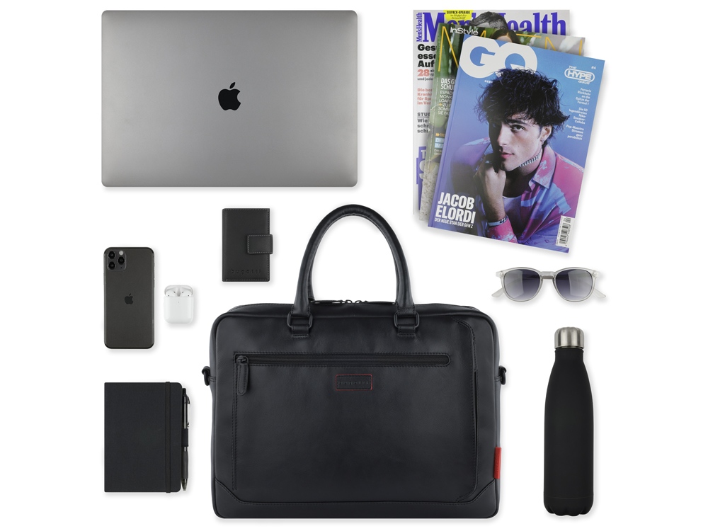 ПОРТФЕЛЬ МУЖСКОЙ CLARK Коллекция CLARK – идеальное сочетание элегантности и спортивного стиля. Все модели изготовлены из натуральной воловьей кожи. Лаконичная геометрия подчеркивает классический дизайн, в то же время акценты красного цвета и прорезиненные детали с логотипом bugatti делают продукты серии современными и абсолютно необходимыми для мужчин, следящих за модными тенденциями. СВОЙСТВА Внутренняя организация: 2 основных отделения на молнии с 2 карманами на молнии, мягким отделением для ноутбука 15’’, открытым карманом и 2 держателями для пишущих принадлежностей. Внешняя организация: передний и боковой карманы на молнии, задний карман на молнии, 2 ручки, съемный регулируемый плечевой ремень (до 150 см), пыльник в комплекте. Материал: воловья кожа / полиэстер Размер: 40 x 9,5 x 29 см Вес: 1,01 кг Объем: 10 л