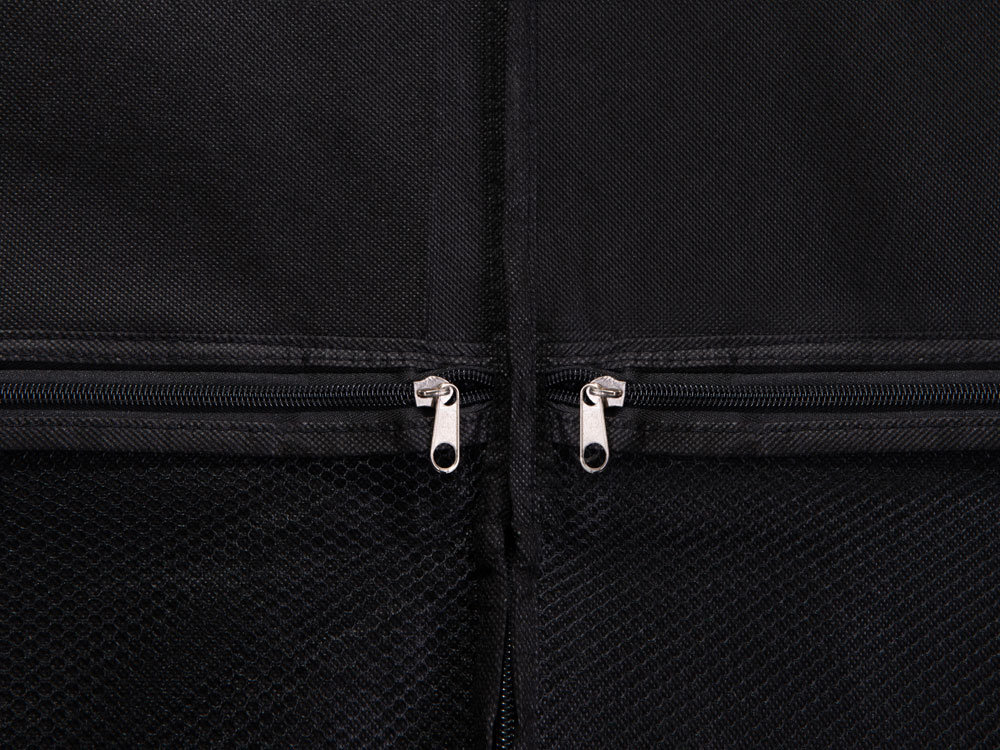 Дорожный чехол из нетканого материала для одежды, который помогает перевозить одежду чистой и без складок. В сложенном виде напоминает форматом портфель, легко переносится с места на место благодаря удобным ручкам. Чехол имеет отверстие для крючка вешалки, на которую вы можете повесить одежду перед тем, как поместить ее внутрь. Прозрачное окошко позволяет узнать, что находится внутри, не расстегивая чехол, а кармашек для карточки — снабдить портплед указаниями или комментарием, касающихся одежды. Нижняя часть портпледа снабжена двумя карманами на молнии для обуви, не сообщающимися с основным отделением. Прочный материал портпледа не требует особых условий хранения и стирки, быстро сохнет и подходит для частого использования. - Карман для карточки/ визитки - Удобные ручки для переноски - Отверстие под крючок вешалки - Два отделения для обуви, каждое рассчитано на 1 пару - Прозрачное окошко, чтобы увидеть содержимое чехла