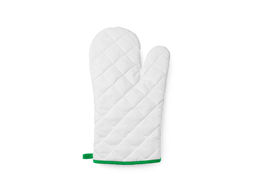 Прихватка из полиэстера. Выполнена в белом цвете с цветными краями. Гладкая сторона идеально подходит для сублимации.