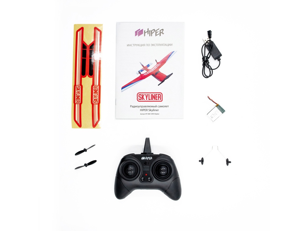 | Комплектность | радиоуправляемый самолёт, пульт управления, аккумулятор, кабель USB, запасной винт, инструкция |