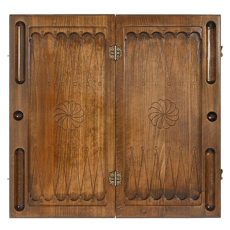 • 2в1 - весь внутренний разворот отведен под поле для нард, а на нижней крышке есть поле для шашек