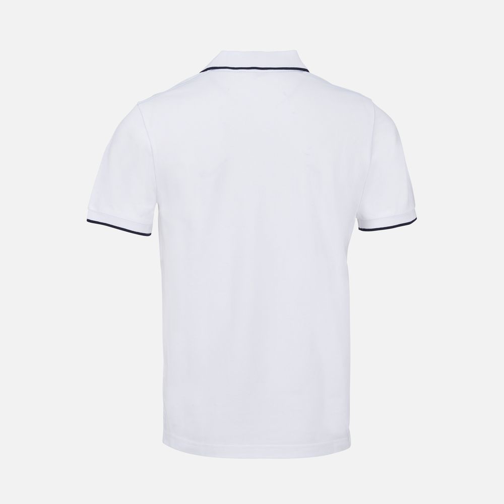 Рубашка поло унисекс Palermo, белая с темно-синим купить оптом и в розницу с нанесением логотипа в Челябинске