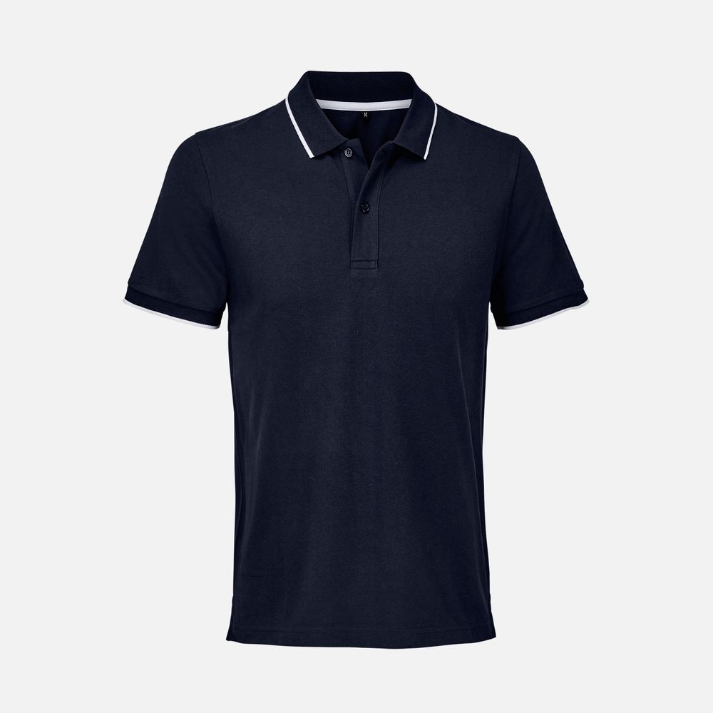Рубашка поло унисекс Palermo, темно-синяя с белым купить оптом и в розницу с нанесением логотипа в Челябинске