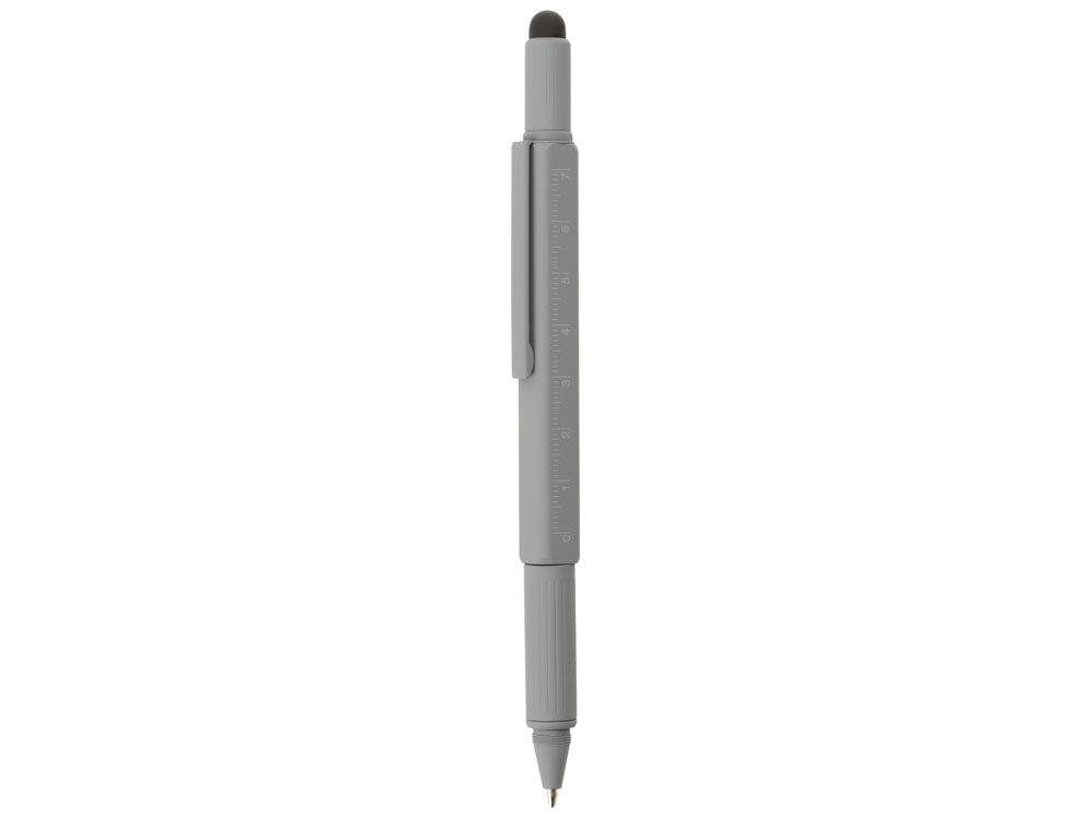 Четырехгранная металлическая ручка в одном корпусе сочетает несколько полезных функций: • Стилус для работы с устройствами с сенсорными экранами. • Под стилусом располагаются крестовая и шлицевая отвертки. • В металлический корпус встроен уровень, на корпусе линейка. • Стальной клип будет держать ручку надежно в кармане. • Возможность нанесения логотипа сразу на несколько граней ручки.