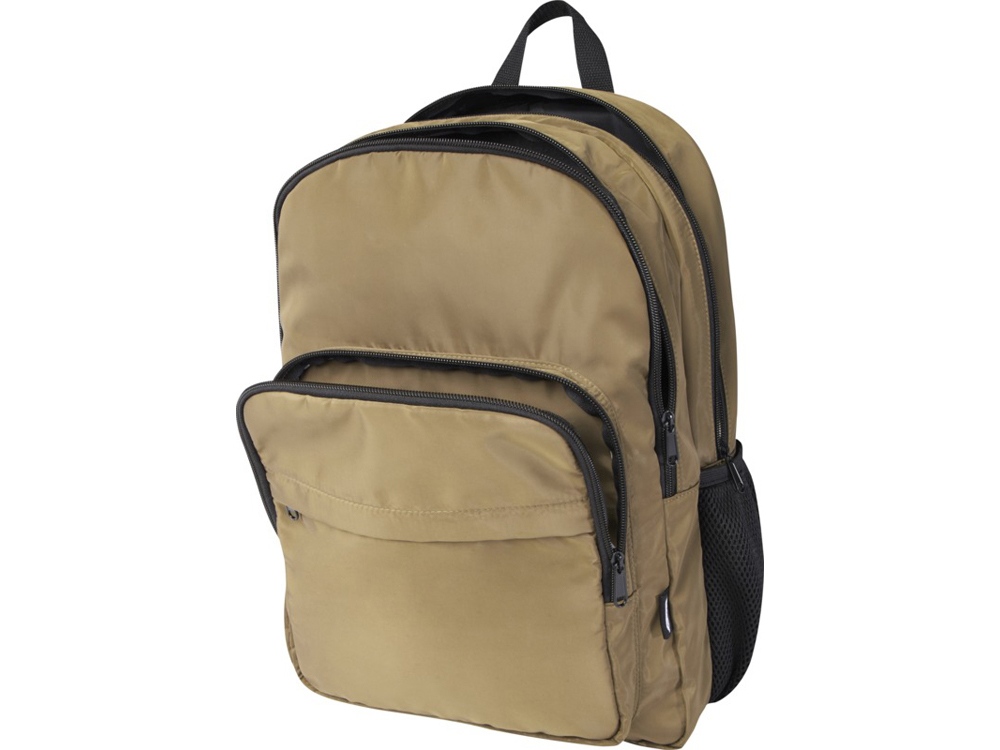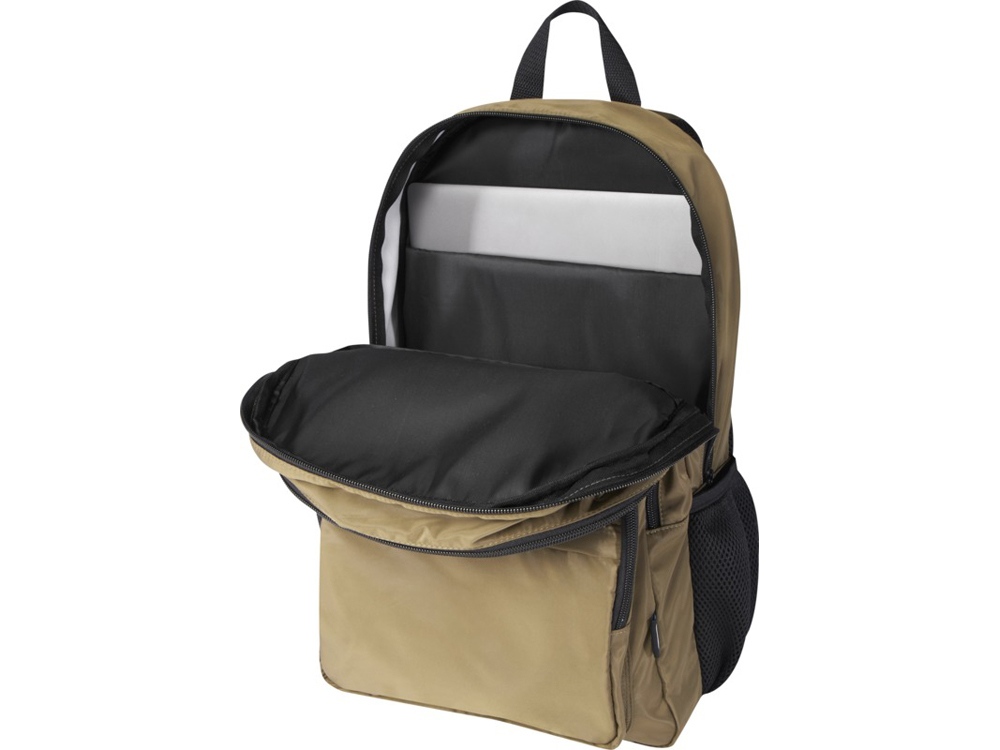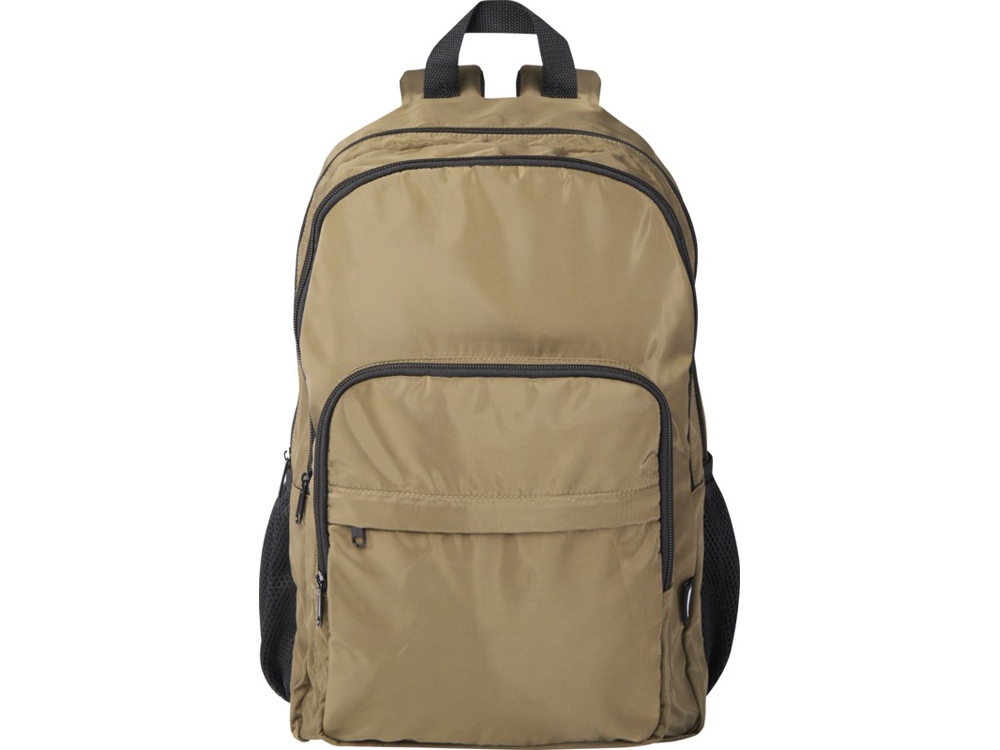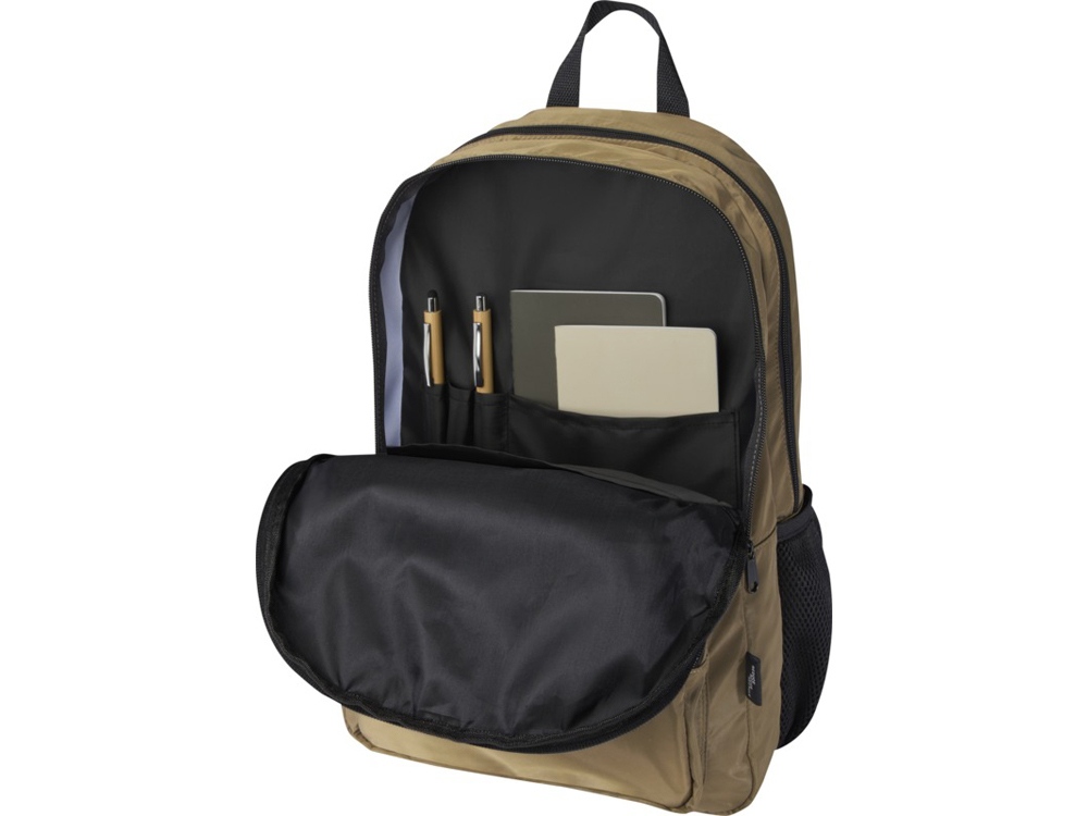 Рюкзак Trend Plus изготовлен из сертифицированной согласно GRS переработанной мягкой и немнущейся ткани и качественной подкладки из RPET. Рюкзак оснащен отделением для ноутбука диагональю 15, отделением-органайзером, передними карманами на молнии, боковыми эластичными сетчатыми карманами и сетчатой вентилируемой задней частью с лямкой для крепления к ручке чемодана. Регулируемые плечевые ремни для оптимального комфорта при ношении. Объем: 20 литр. Выдерживает вес до 10 кг. Не содержит ПВХ. GRS certified recycled polyester.