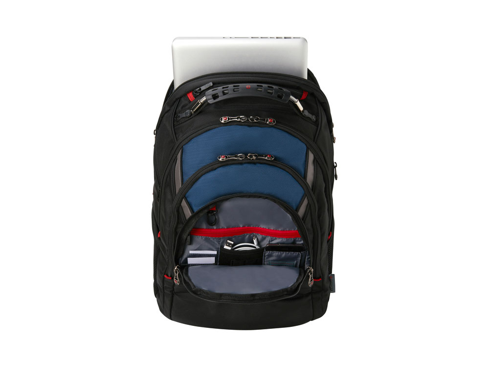 Рюкзак для ноутбука 17 (23 л) WENGER Ibex. Функциональная организация: • Отделение для ноутбука с мягкими стенками c тройной защитой 17'': Отделение с мягкими стенками с тройной защитой подходит для большинства ноутбуков с диагональю экрана до 17. • Карман для планшетного компьютера с мягкими стенками: Карман с мягкими стенками обеспечивает безопасную и удобную переноску планшетного компьютера. • Карман для вещей первой необходимости: Карман в передней части рюкзака подходит для хранения самых необходимых вещей, аксессуаров и телефона. • Карман-органайзер для мелких предметов: Карман-органайзер включает ключницу и многочисленные кармашки для пишущих принадлежностей, документов и карты памяти, флисовый карман для мобильного телефона. • Плечевые ремни: Эргономичные регулируемые плечевые ремни анатомической формы, оснащенные пропускающей воздух набивной подкладкой, обеспечивают максимальный комфорт при ношении рюкзака. • Ручка с тросом: Прочная ручка с металлическим тросом в основании. • Стабилизирующая платформа CaseBase: Специальная платформа CaseBase помогает зафиксировать рюкзак в вертикальном положении. • Амортизирующие вставки Shock-Absorbing: Амортизирующие вставки на плечевых ремнях Shock-Absorbing облегчают нагрузку на плечи и спину. • Система циркуляции воздуха Airflow: Спинка рюкзака с системой циркуляции воздуха имеет специальную рельефную поверхность, обеспечивает удобное прилегание к спине и вентиляцию. • Боковой карман для бутылок/зонта: Карманы из эластичной сетки подходят для хранения бутылок с водой и зонт. • Замки из цинка с черным никелированным покрытием, устойчивые к коррозии.
