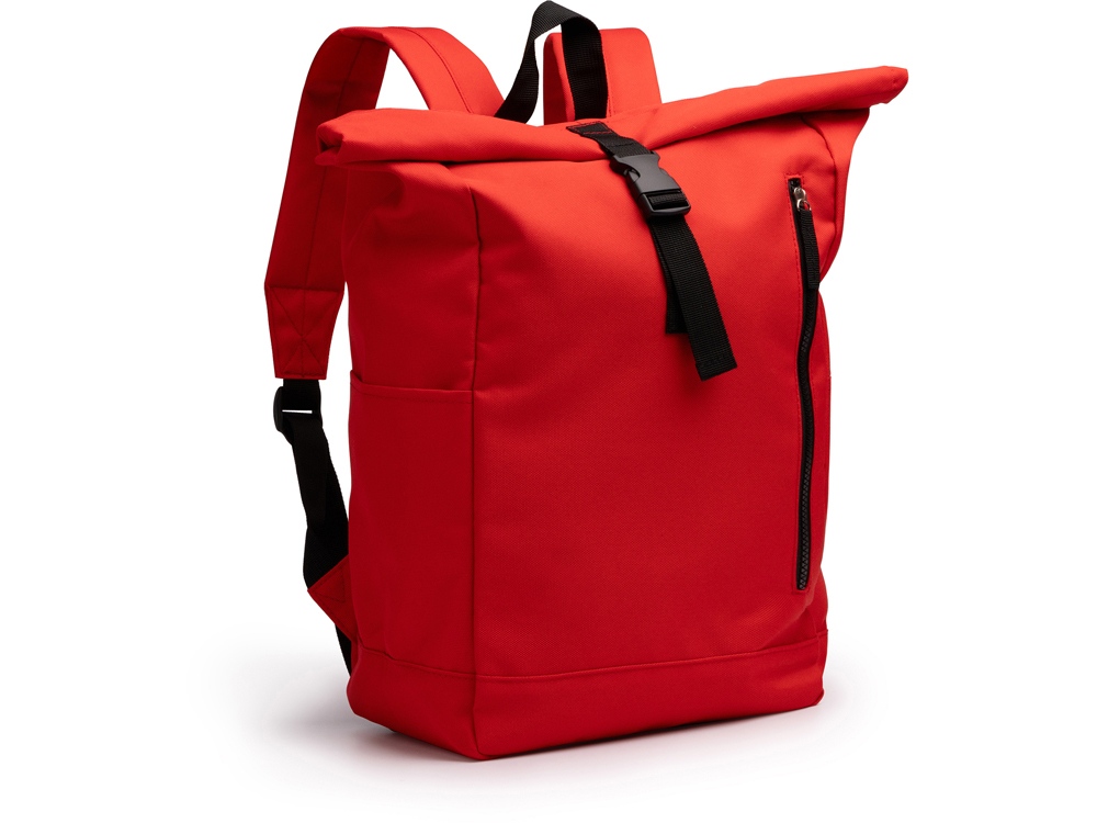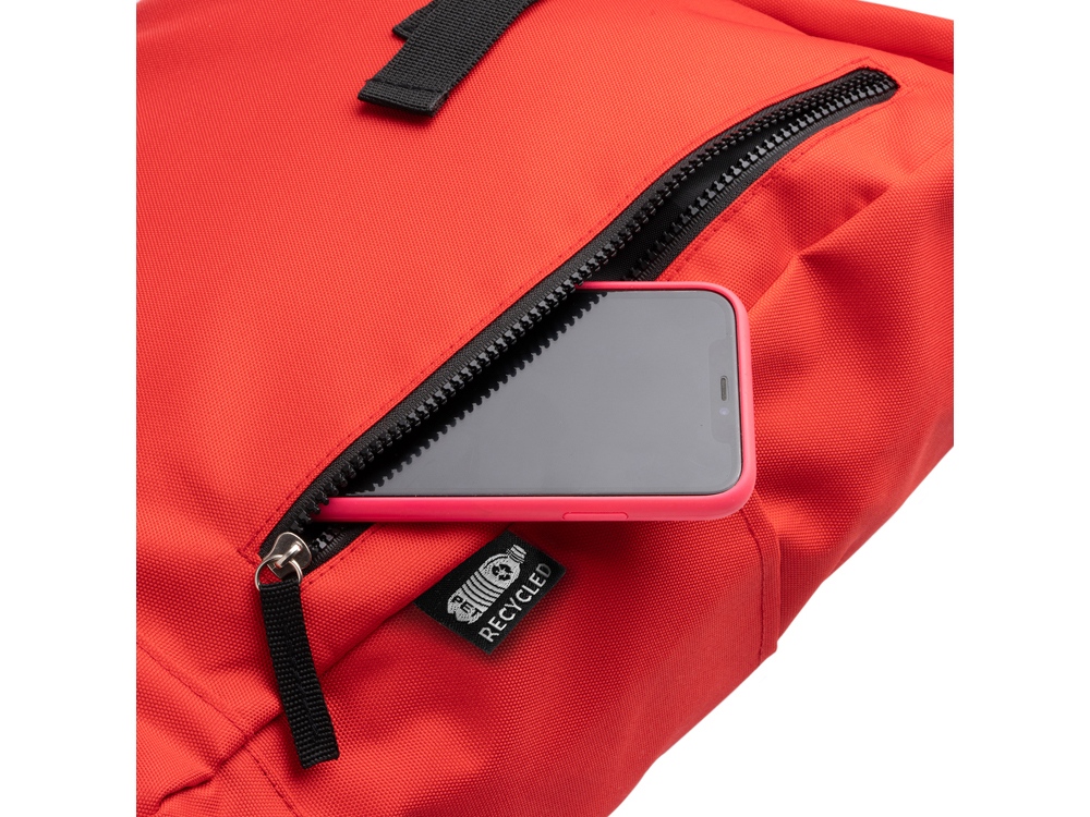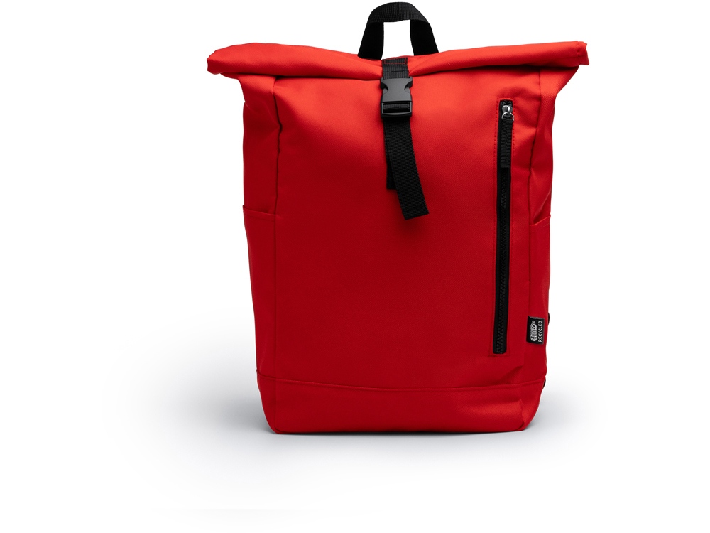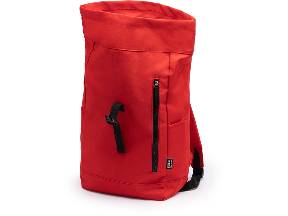 Рюкзак из полиэстера RPET. Основное вместительное отделение с широким отверстием. Внешний карман на молнии и два боковых кармана. Мягкие сетчатые плечевые ремни и спинка.