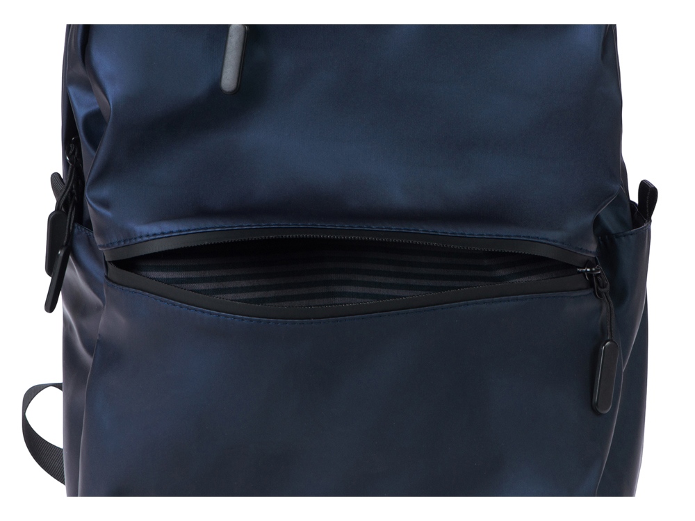 Элегантный легкий городской рюкзак из мягкого приятного на ощупь материала можно использовать для передвижений по городу, а так же в поездках, для чего на спинке предусмотрен ремень для крепления на ручку чемодана. Для удобства и компактного хранения содержимого снаружи расположены 2 передних кармана на молниях и 2 боковых кармана. Внутри уплотненный карман для ноутбука. Стильная подкладка в полоску в тон цвета внешнего материала делает рюкзак модным аксессуаром. Благодаря водостойкому материалу и молниям содержимое рюкзака не намокнет под дождем. Лямки регулируются по длине.