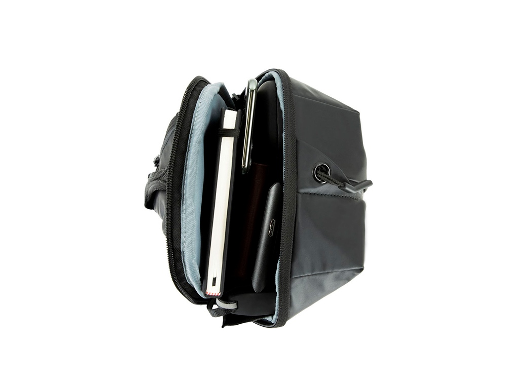 РЮКЗАК С ОДНИМ ПЛЕЧЕВЫМ РЕМНЁМ BLANC Рады представить вам нашу новую серию универсальных и чрезвычайно стильных сумок и рюкзаков Blanc. В этой линейке наши дизайнеры добились идеального сочетания дизайна, функциональности и пригодности для повседневного использования. В качестве основного материала используется тарпаулин - очень лёгкая ткань с водоотталкивающими свойствами. Скрытые молнии с логотипом Bugatti не только защищают от проникновения влаги, но и дополняют стильный дизайн коллекции. С сумками Blanc будьте готовы быть в центре внимания! СВОЙСТВА Внутренняя организация: основное отделение на молнии с открытым карманом Внешняя организация: передний карман на молнии с открытым карманом, задний потайной карман на молнии, малый карман на молнии на ремне, верхняя ручка, регулируемый мягкий плечевой ремень со съёмным карабином для ношения рюкзака с правой или с левой стороны (до 80 см) Размер: 18 x 9 x 30 см Вес: 0,25 кг Материал: тарпаулин / полиэстер