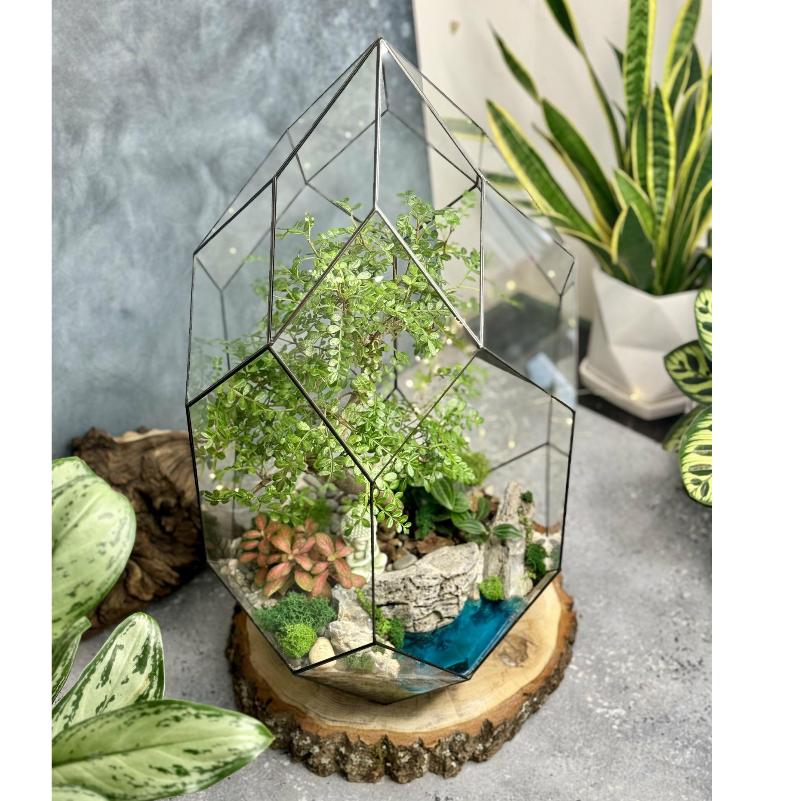 Доставка СДЕК осуществляется в разобранном виде без эпоксидной смолы из которой выполнен водоём (отдельно- ваза, мох, растения, грунт и дренаж), при условии плюсовой температуры на маршруте следования