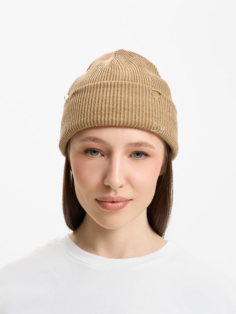 Шапка Ribelle — это практичная двухслойная модель из акрила, которая сочетает уют с современным дизайном. Ее регулируемый отворот с рваным краем и металлическими кольцами в качестве украшений создает выразительный и необычный акцент. Благодаря универсальности и продуманной конструкции она станет стильным и функциональным дополнением гардероба.