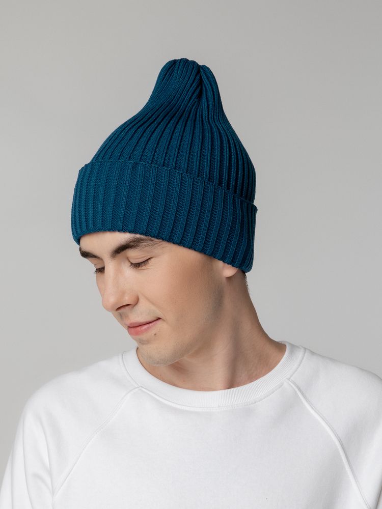 Шапка Yong, темно-синяя (лазурная) купить оптом и в розницу с нанесением логотипа в Челябинске