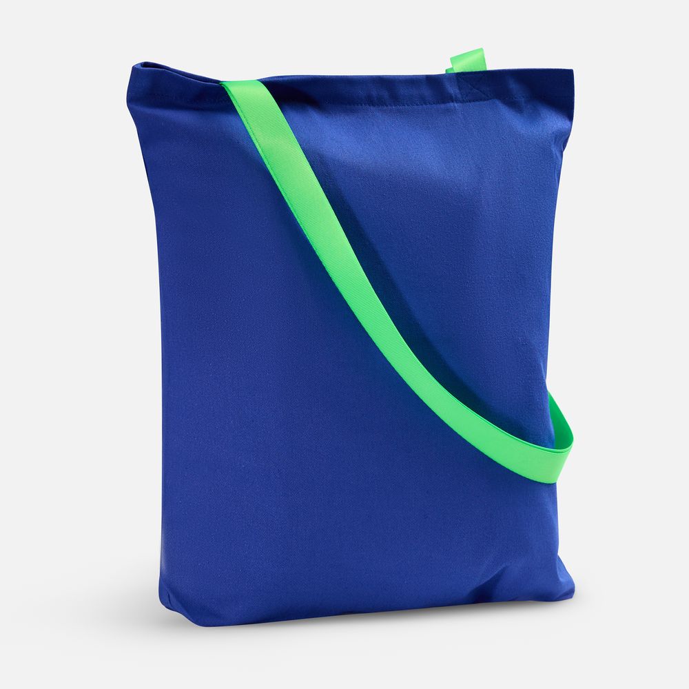 Шопер B4, синий с зелеными ручками купить оптом и в розницу с нанесением логотипа в Челябинске