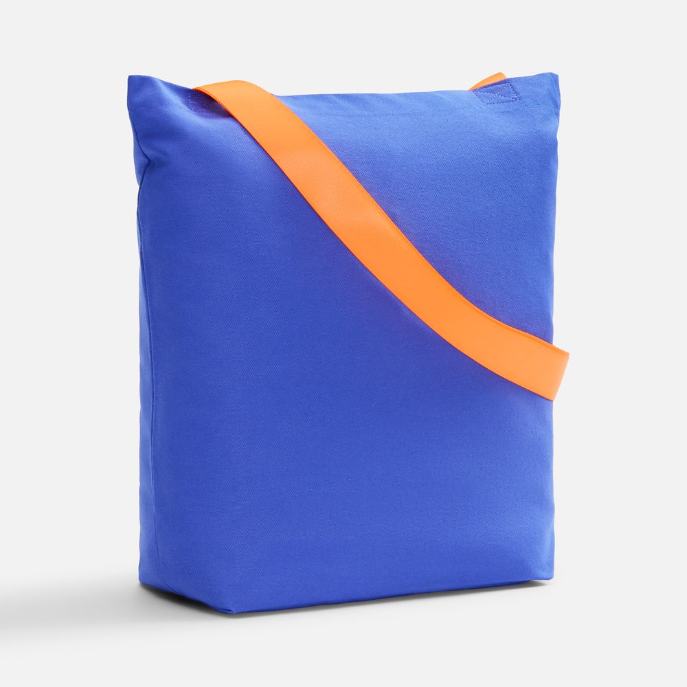 Шопер B5, синий с широкими оранжевыми ручками купить оптом и в розницу с нанесением логотипа в Челябинске