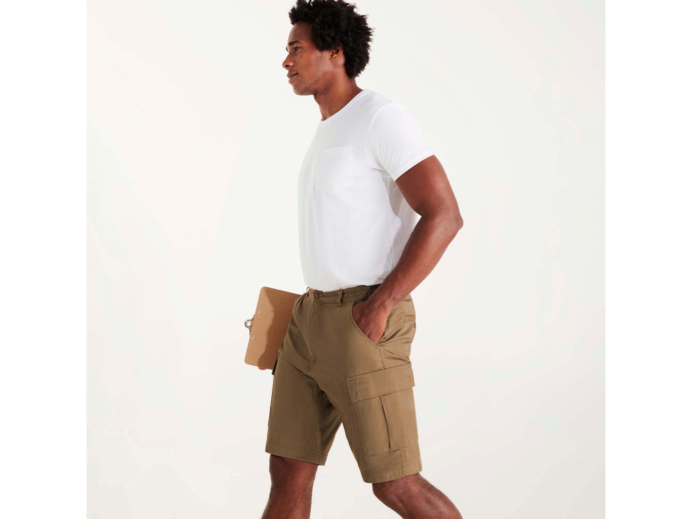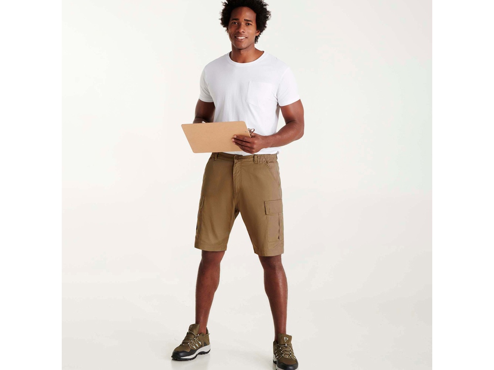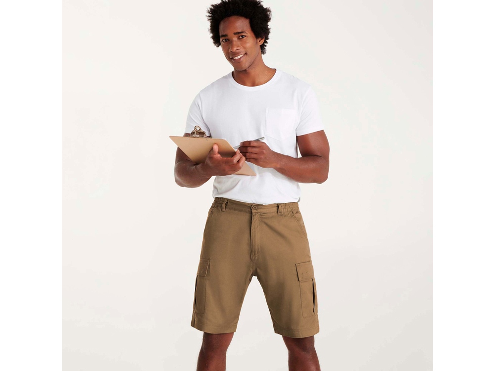 Шорты бермуды - регулируемый эластичный пояс по бокам - два передних кармана - два боковых кармана карго со складкой и клапаном застёгивается на липучку - два задних кармана на пуговице - два боковых кармана карго