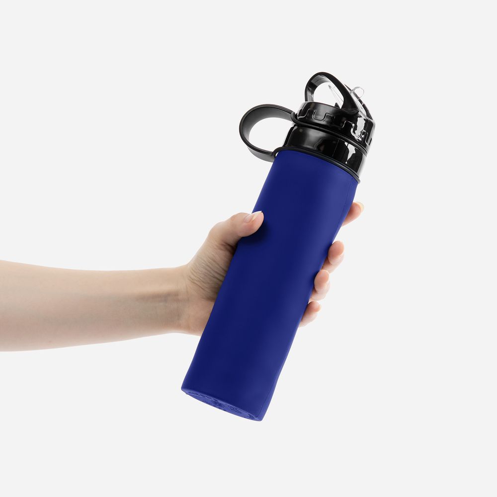 Складная бутылка для воды Langfossen, синяя купить оптом и в розницу с нанесением логотипа в Челябинске