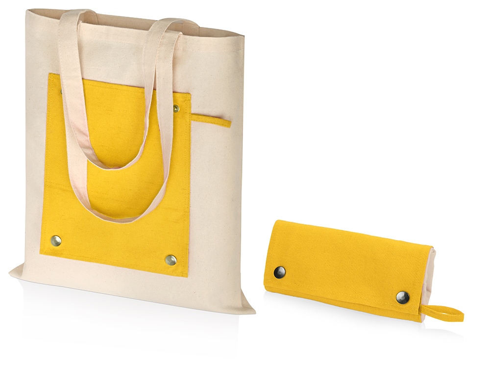 Плотный яркий карман снаружи для хранения мелочей. Удобная в хранении сумка скручивается в наружный карман. Закрепляется в рулоне с помощью кнопок.