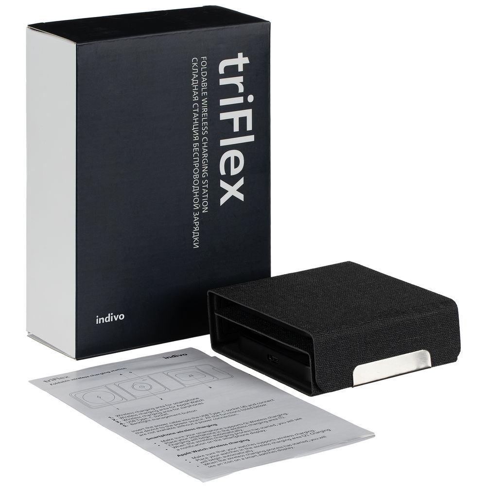 Складная станция беспроводной зарядки triFlex, черная купить оптом и в розницу с нанесением логотипа в Челябинске
