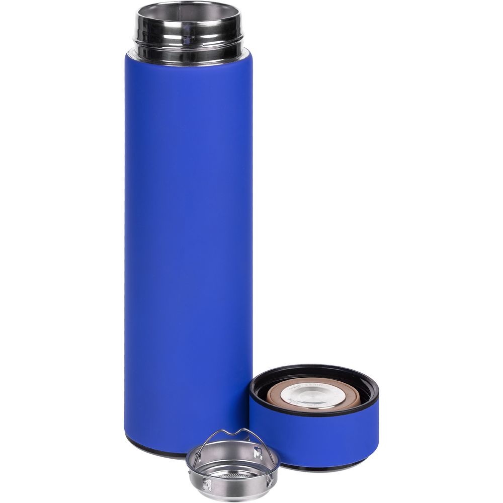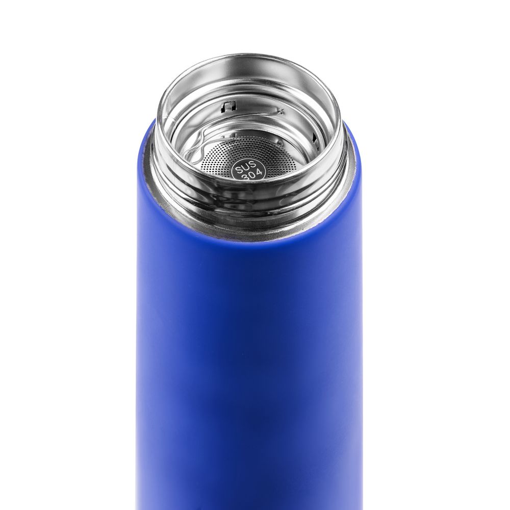 Смарт-бутылка с заменяемой батарейкой Long Therm Soft Touch, синяя купить оптом и в розницу с нанесением логотипа в Челябинске
