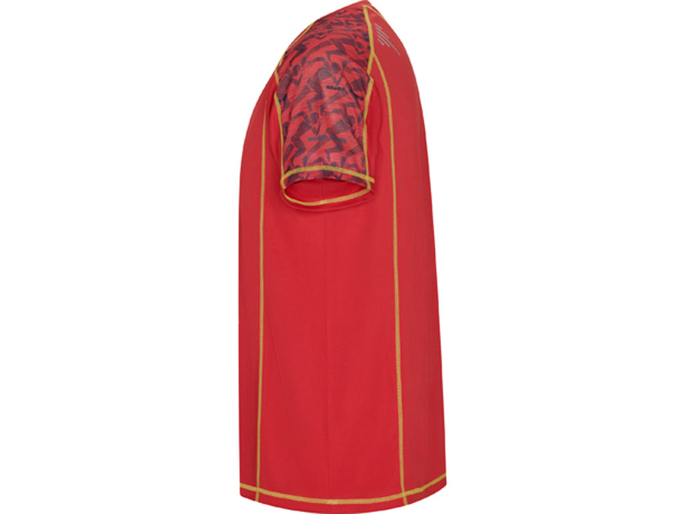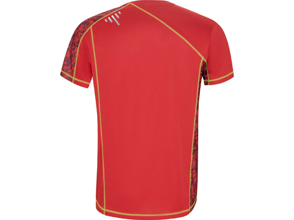 Спортивная футболка с коротким рукавом и принтованными вставками. Контрастные отстрочки плоским швом, светоотражающие элементы на полочке и спинке. Эко лейбл на рукаве. Технологичное полотно: *переработанный полиэстер с функцией контроля сухости *защита от UV излучения