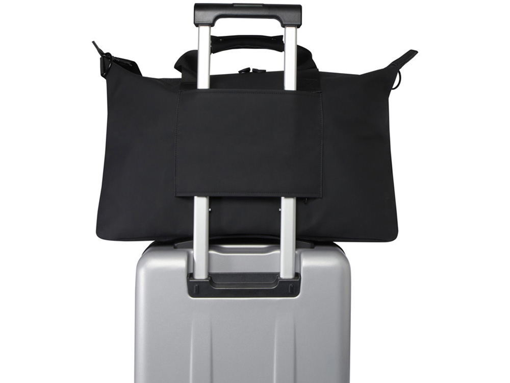 Спортивная сумка Turner на 51% изготовлена из переработанного пластика, сертифицированного по стандарту GRS, а подкладка изготовлена из 100% переработанного ПЭТ-пластика, сертифицированного по стандарту GRS. Спортивная сумка имеет мягкое отделение для ноутбука с диагональю 15,6 дюйма, внутренний ремешок для хранения бутылки с водой и карман на молнии для мелочей. Кроме того, багажный ремень на задней стороне позволяет легко прикрепить сумку к чемодану на колесиках, что делает ее удобной спутницей в путешествии. Сумку можно носить за две короткие ручки или за съемный и расширяемый плечевой ремень, длину которого можно отрегулировать для максимального удобства. Объем: 36 литр. 51% GRS recycled PU, 49% PU.