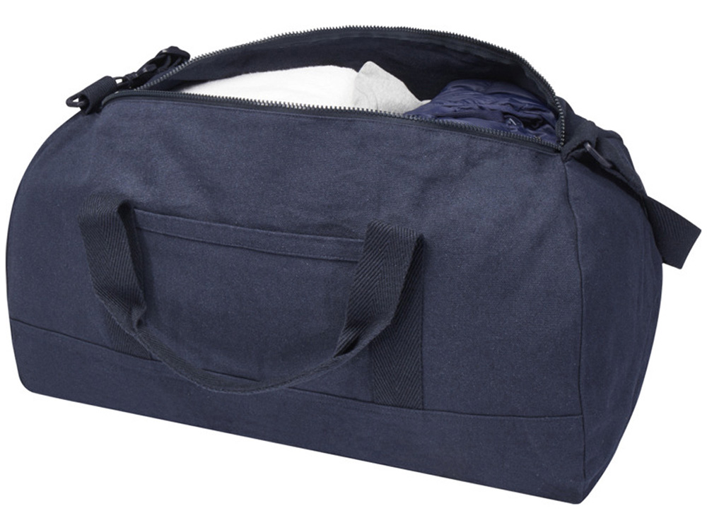 Спортивная сумка Porter, изготовленная из переработанного хлопка и переработанного полиэстера плотностью 500 г/м², имеет просторное основное отделение для оптимального хранения крупных предметов и небольшой передний накладный карман для хранения мелких предметов, таких как паспорт или телефон. Сумку можно носить за две короткие ручки или за съемный и расширяемый плечевой ремень, длину которого можно отрегулировать для максимального удобства. Спортивная сумка изготовлена из переработанных волокон Cyclo®, в которых используются предварительно отсортированные отходы, определяющие цвет пряжи. Эти волокна не только снижают потребность в первичных ресурсах, но и демонстрируют приверженность циклическому образу жизни, воплощая суть сокращения отходов и продвижения системы с замкнутым контуром. Каждая сумка также поставляется с индикатором Aware™. Эта инновационная функция позволяет пользователям отслеживать происхождение и путь своего товара с помощью QR-кода, повышая прозрачность цепочки поставок и способствуя более прочной связи между продуктом и процессом его производства. Объем: 50 литр. 70% Переработанный Хлопок, 30% Переработанный Полиэстер, 500 г/м2.