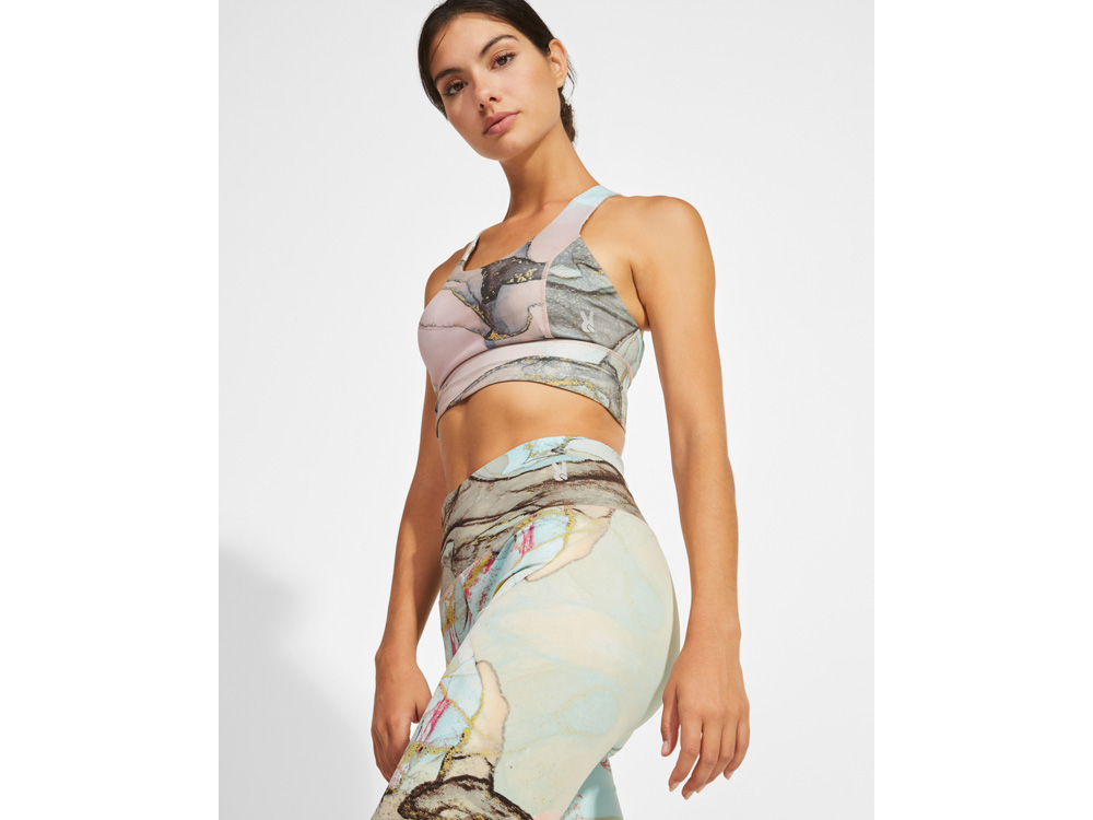 Спортивный женский топ с высокой поддержкой. Спинка·борцовка. Усиленная эластичная резинка под бюстом. Двойная ткань и подкладка. Съемные чашечки. Светоотражающий логотип Roly на спине.