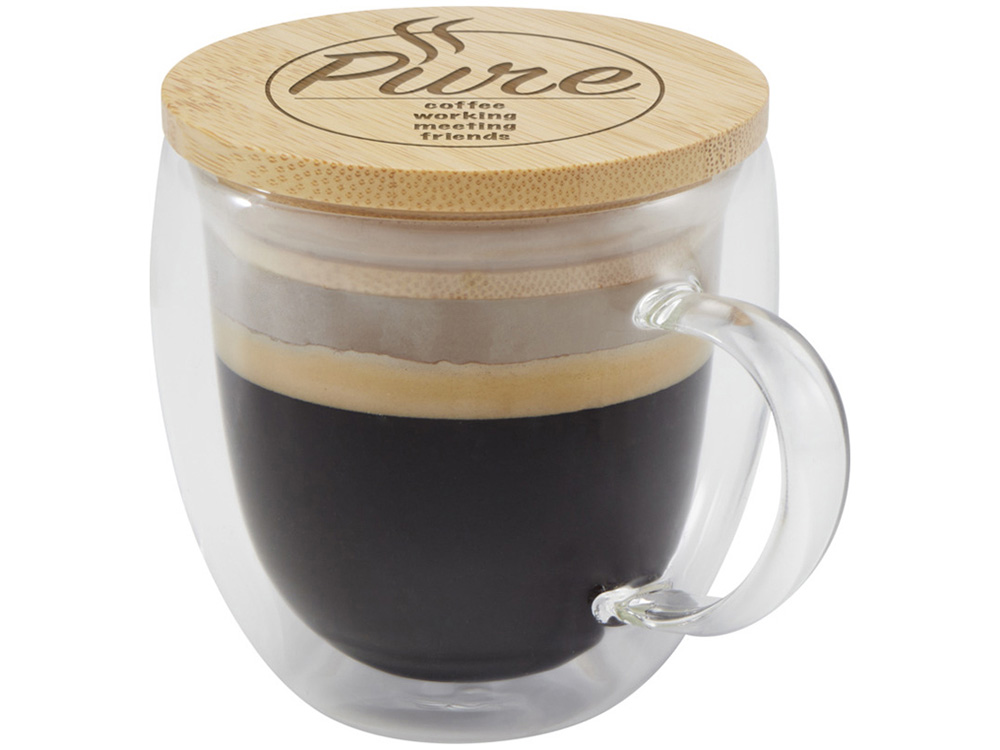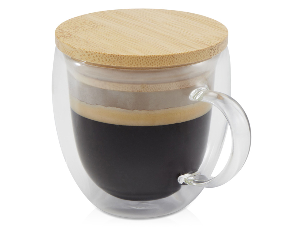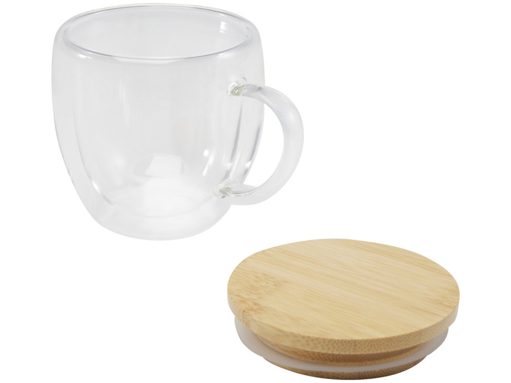 Стеклянная кружка Lenora емкостью 250 мл с бамбуковой крышкой - прозрачный купить оптом и в розницу с нанесением логотипа в Челябинске