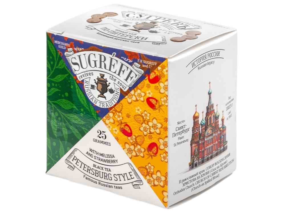 Благородный чайный купаж, в коем сбалансированное сочетание трав позволяют прочувствовать дух города на Неве. Умный интеллигентный подарок для друзей, коллег, партнёров; оригинальный сувенир из России для иностранцев; небанальный подарок руководителю; презент для учителей, врачей и т.д.; вкусный чай для личного потребления.