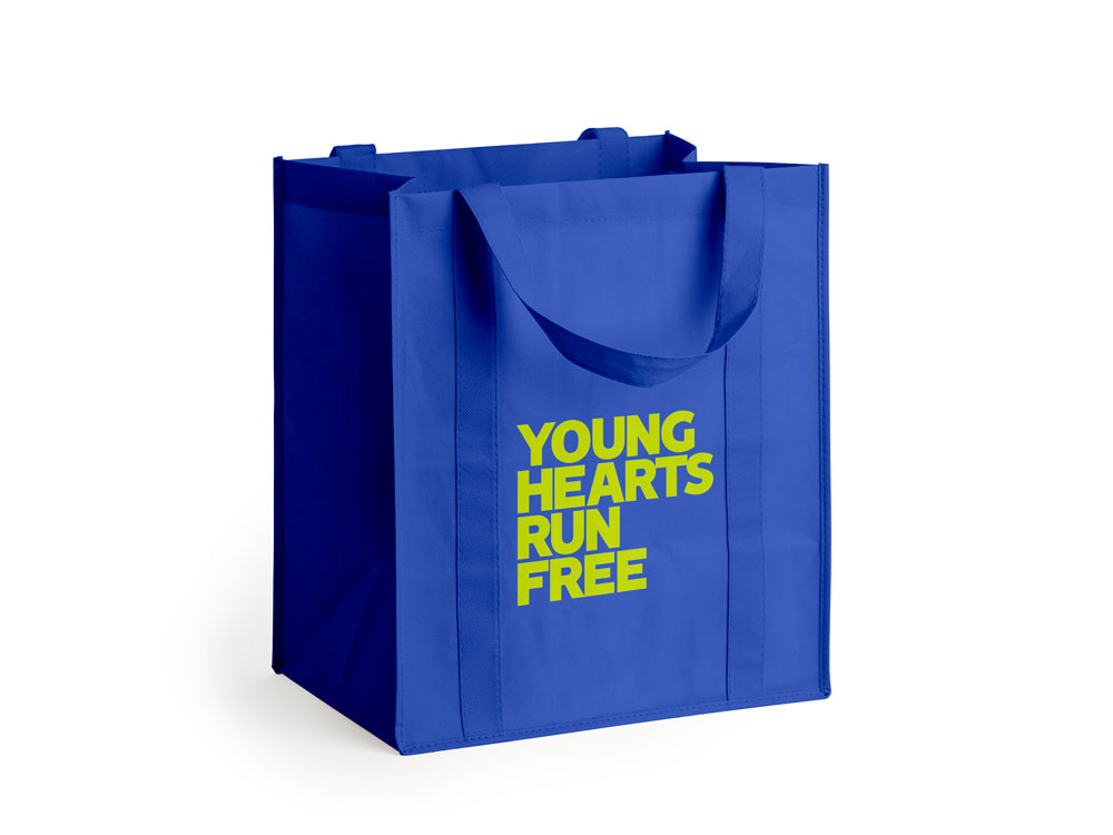 Практичная и удобная большая сумка для покупок из нетканого материала 80 г/м2 с усиленными ручками длиной 58 см и прошитой отделкой.
