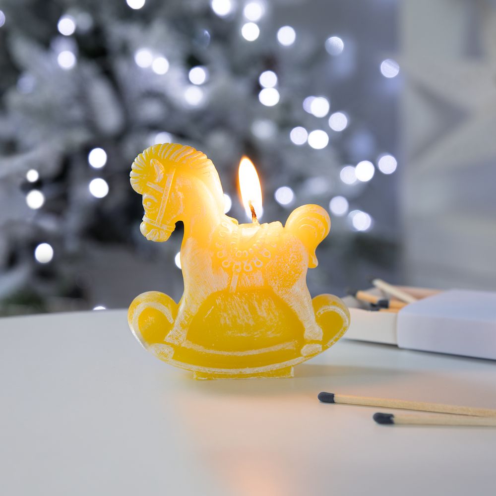 Свеча фигурная «Лошадка-качалка», желтая купить оптом и в розницу с нанесением логотипа в Челябинске