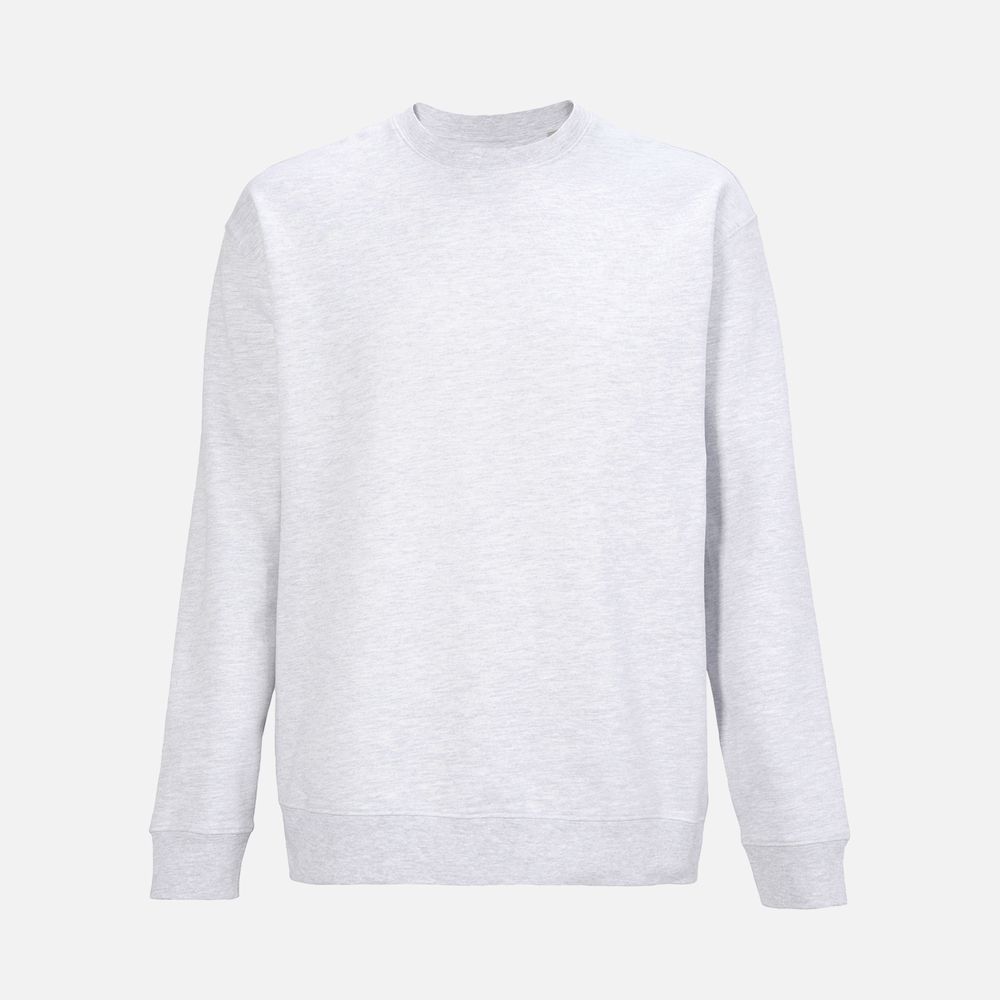 Свитшот унисекс из хлопка и переработанного полиэстера с круглым вырезом и втачным рукавом.