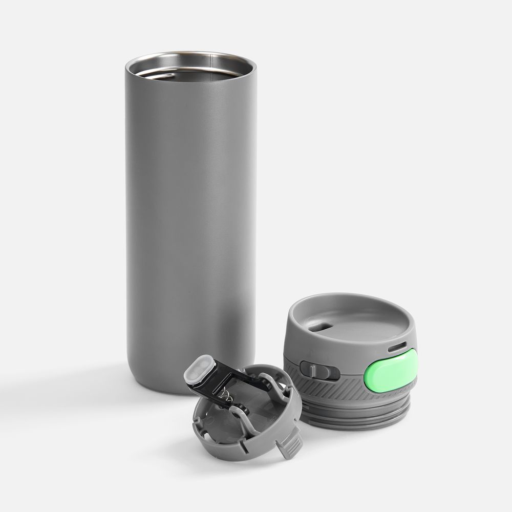 Термостакан X1 с цветной кнопкой, серый с зеленым