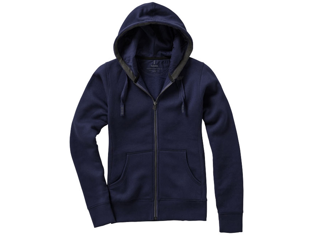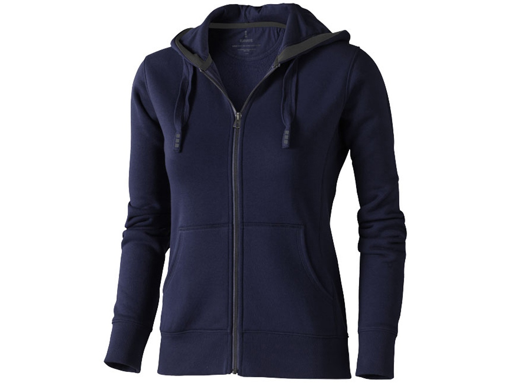Женская толстовка Арора с капюшоном и застежкой-молнией на всю длину. Стандартный покрой. Резинка 2х2 на боковых вставках, поясе и манжетах. Карман кенгуру. Мужская и женская модели с завязками на капюшоне. Подкладка внутри капюшона. Атласная лента внутри горловины. Принт лого сзади в тон изделия. Серебристые люверсы с лого. Ворсистый внутри для мягкости, тепла и комфорта. Трикотаж: 80% хлопок и 20% полиэстер, чесаная внутренняя сторона. 300 г/м².