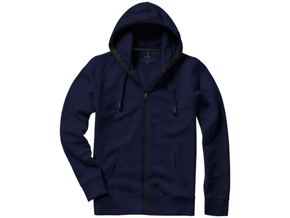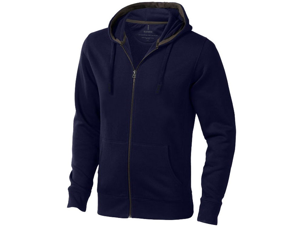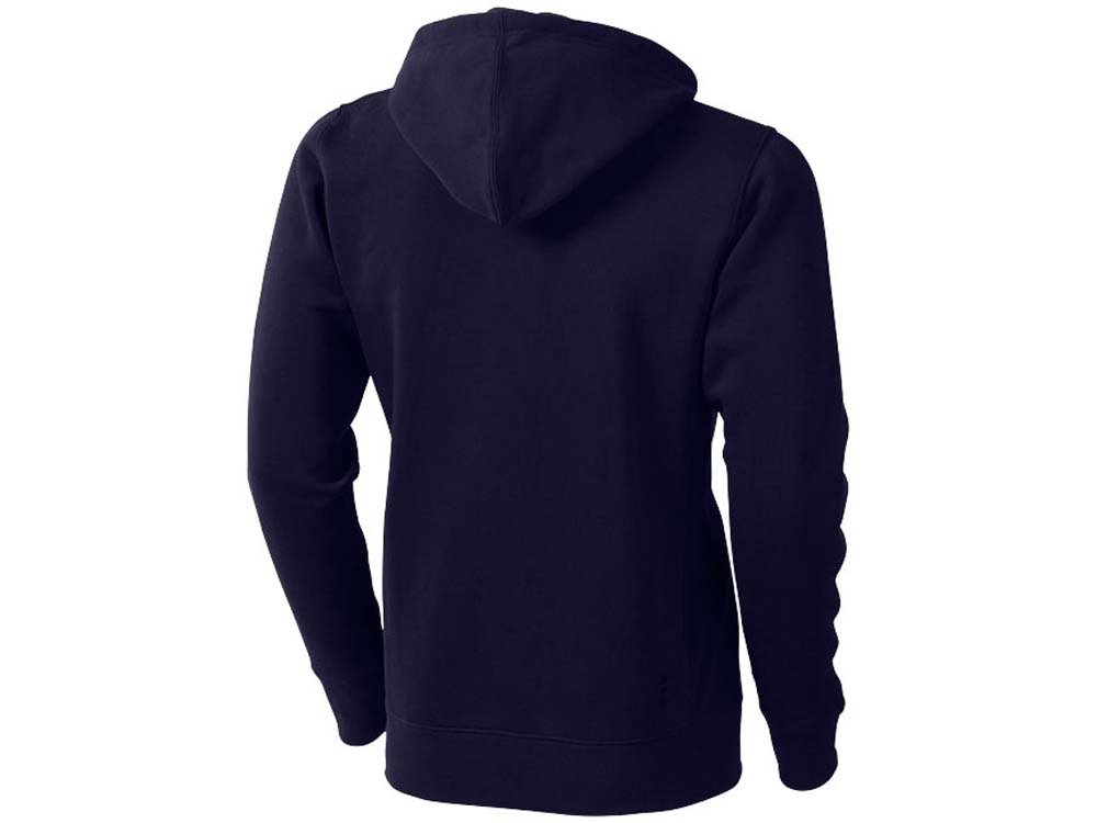 Толстовка Арора с капюшоном и застежкой-молнией на всю длину. Стандартный покрой. Резинка 2х2 на боковых вставках, поясе и манжетах. Карман кенгуру. Мужская и женская модели с завязками на капюшоне. Подкладка внутри капюшона и на спинке под горловиной в форме полумесяце. Атласная лента для укрепления внутри горловины. Принт лого сзади в тон изделия. Серебристые люверсы с лого. Трикотаж: 82% хлопок, 10% вискоза и 8% полиэстер, чесаная внутренняя сторона. 300 г/м².