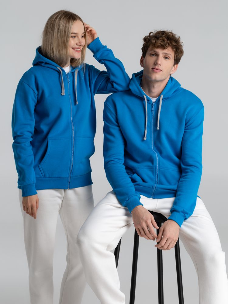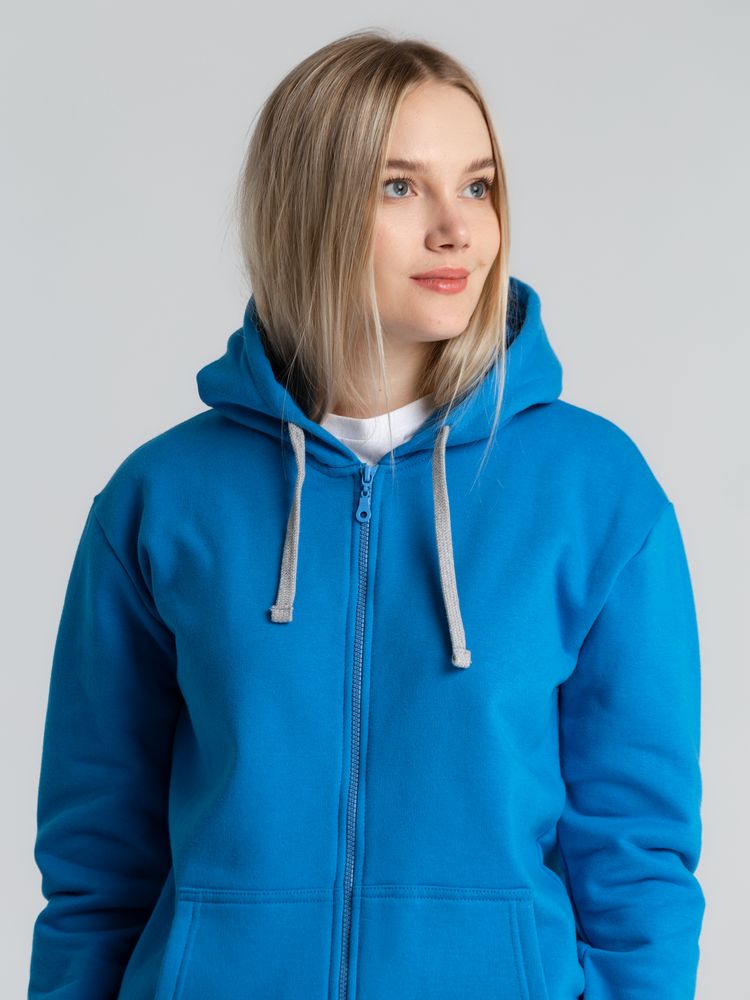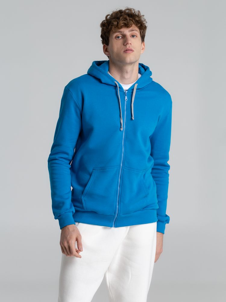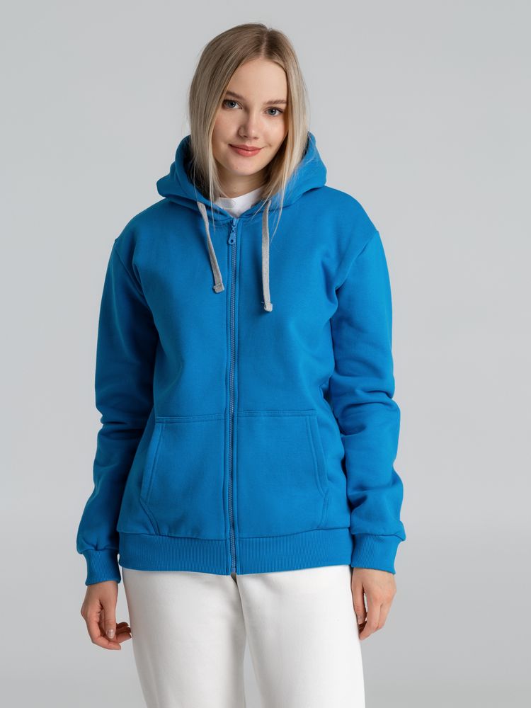 Толстовка с капюшоном на молнии Unit Siverga Heavy, бирюзовая купить оптом и в розницу с нанесением логотипа в Челябинске