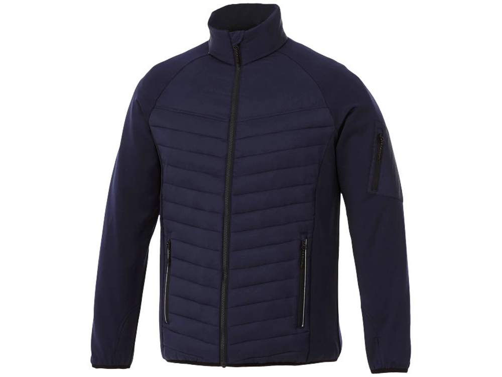 Утепленная куртка Banff. Внутренний противоветровой клапан и защита подбородка. Внутренний выход для медиапроводов. Удлиненная задняя часть изделия. Манжеты-резинки контрастного цвета. Отделка контрастной тканью. Отражающие детали. Молния с контрастной лентой. Молния легкого скольжения. Петелька-вешалка. Комфортный ярлык-трансфер на изделии. 100% нейлоновая тканая матовая отделка 380T, водоотталкивающая и пухонепроницаемая ткань. Контрастная ткань: 94% полиэстер, 6% эластан с водоотталкивающей поверхностью. 38 г/м².