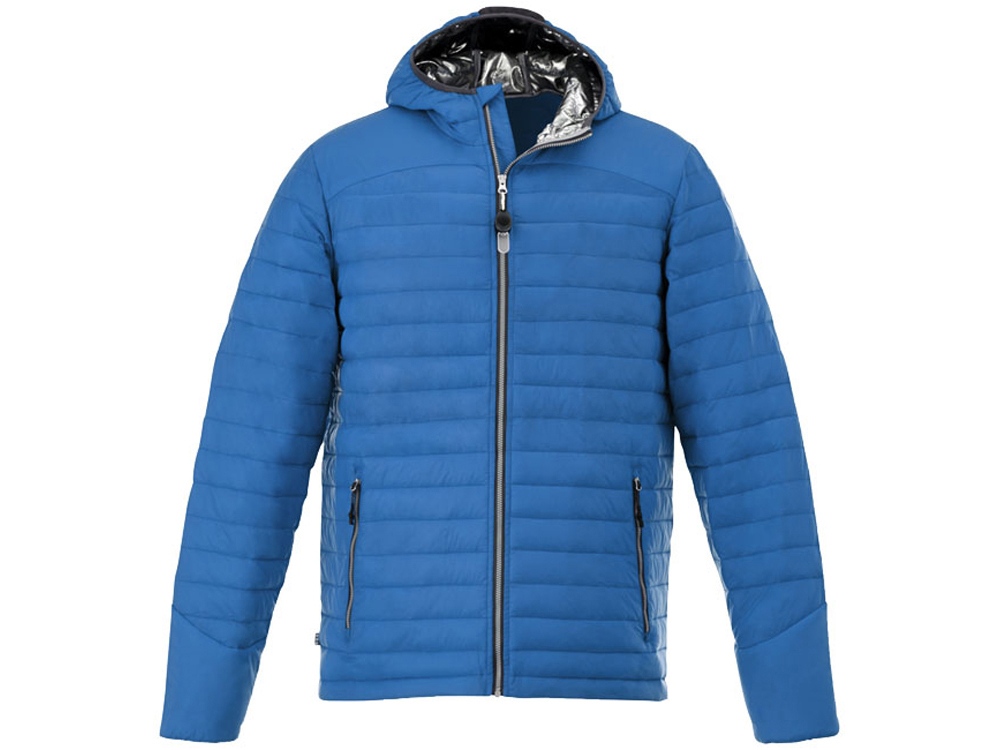 Утепленная куртка Silverton. Упаковывается в нижний левый карман. Внутренний выход для медиапроводов. Эластичные завязки с фиксаторами. Эластичные манжеты. Манжеты-резинки контрастного цвета. Эргономичные рукава. Молния по центру с отражающей лентой. Карманы для рук на молнии. Петелька-вешалка. Комфортный ярлык-трансфер на изделии. 100% нейлон, матовый блеск 380Т, влагоотталкивающий, не пропускает пух. Наполнитель - 100% полиэстер искусственный пух. 38 г/м².