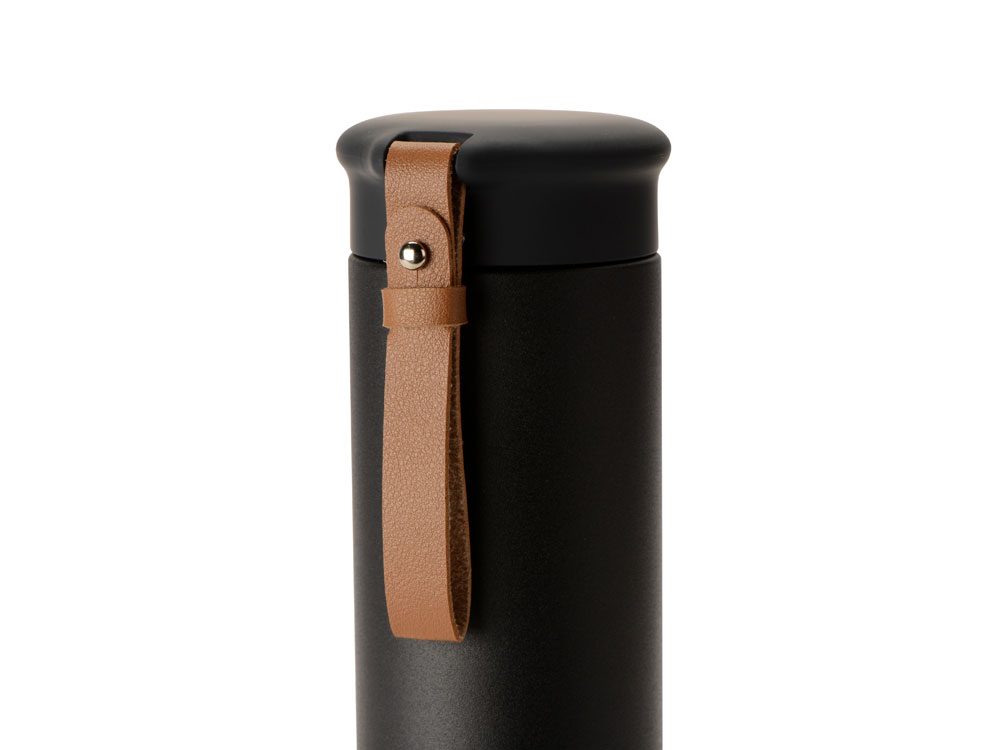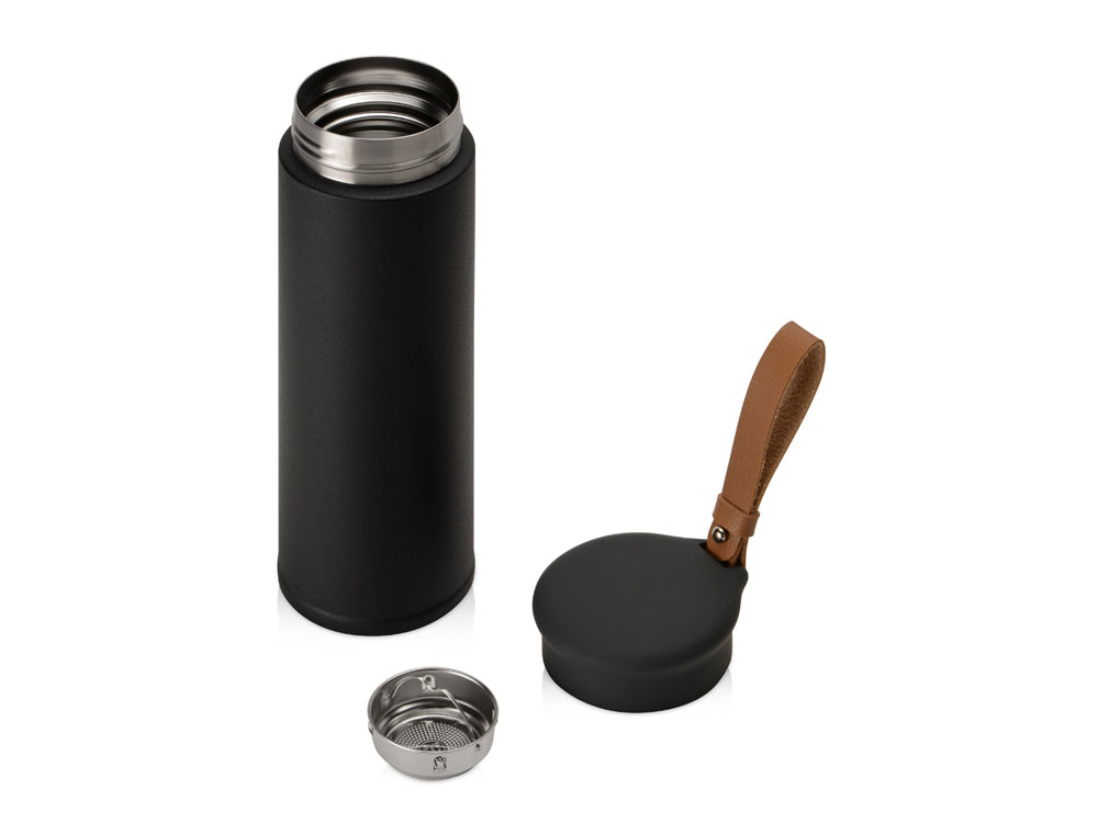 Engage — термос из долговечной нержавеющей стали с двойными стенками, вакуумная изоляция между которыми помогает сохранять температуру напитков в течение долгого времени. Термос идеально подходит для заваривания чая: специально для этого в комплекте идет металлическое ситечко с ручкой, которое не пропустит ни одной чаинки. Термос герметично завинчивается на крышку, оснащенную съемным ремешком из качественной ПУ кожи. Крышка имеет прорезиненное покрытие, что создает интересное сочетание текстур в рамках одной модели. Корпус имеет элегантную рельефную поверхность с антискользящим эффектом. - Удобный ремешок - Герметичная крышка soft-touch - Сохраняет тепло и холод до 18 часов - Пищевая долговечная сталь 304 марки - Оптимальный объем