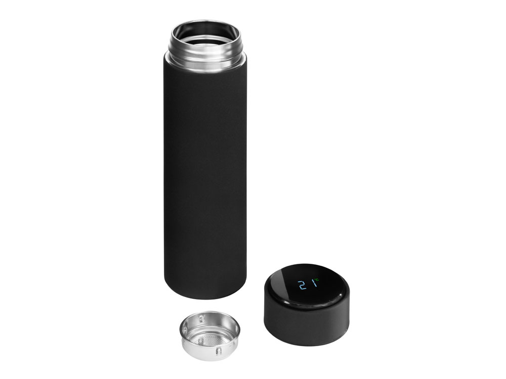 Вакуумный термос Module X не только сохраняет ваши напитки горячими, но и показывает, насколько они горячие! Уникальная особенность термоса — это сенсорный индикатор температуры, расположенный в крышке. Чтобы узнать температуру внутри термоса, достаточно прикоснуться к поверхности крышки. Батарейку CR2032 по истечении срока работы (1-2 года) можно заменить — для этого открутите верхнюю часть крышки против часовой стрелки и аккуратно поменяйте элемент питания. Внутренняя колба изготовлена из высококачественной стали марки SUS 316 с добавлением молибдена, что делает термос еще более устойчивым к коррозии*. Снаружи термос покрыт мягким прорезиненным покрытием soft touch, благодаря которому его приятно держать в руке. - Пищевая долговечная сталь марки SUS 316 - Двойные стенки с вакуумной медной изоляцией - Сенсорный индикатор температуры - Съемное ситечко - Покрытие soft-touch - Заменяемая батарея * по сравнению с аналогами из 304 стали.