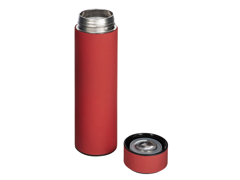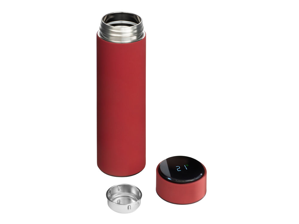 Вакуумный термос Module X не только сохраняет ваши напитки горячими, но и показывает, насколько они горячие! Уникальная особенность термоса — это сенсорный индикатор температуры, расположенный в крышке. Чтобы узнать температуру внутри термоса, достаточно прикоснуться к поверхности крышки. Батарейку CR2032 по истечении срока работы (1-2 года) можно заменить — для этого открутите верхнюю часть крышки против часовой стрелки и аккуратно поменяйте элемент питания. Внутренняя колба изготовлена из высококачественной стали марки SUS 316 с добавлением молибдена, что делает термос еще более устойчивым к коррозии*. Снаружи термос покрыт мягким прорезиненным покрытием soft touch, благодаря которому его приятно держать в руке. - Пищевая долговечная сталь марки SUS 316 - Двойные стенки с вакуумной медной изоляцией - Сенсорный индикатор температуры - Съемное ситечко - Покрытие soft-touch - Заменяемая батарея * по сравнению с аналогами из 304 стали.