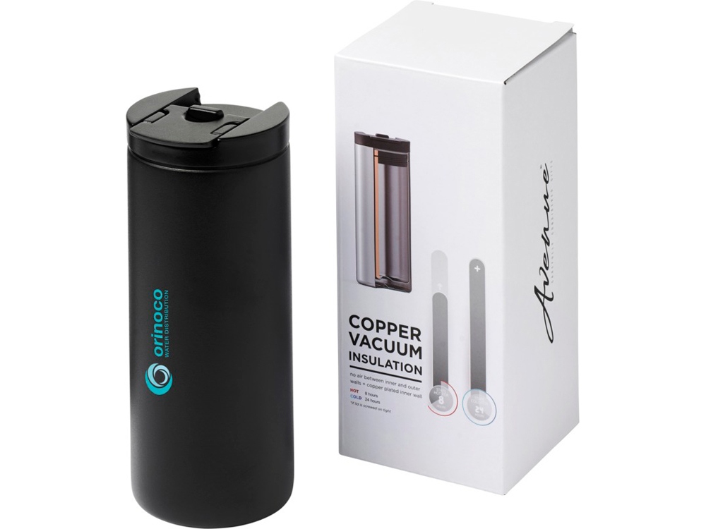 Вакуумный термостакан Lebou с медным покрытием 360 мл. Компактный и долговечный термостакан идеально подходит для работы и путешествий. Изготовлен из нержавеющей стали с двойными стенками и вакуумной, медной изоляцией, что позволяет сохранять температуру горячих напитков до 8 часов, а холодных — до 24 часов. Крышка имеет функцию блокировки. Кроме того, конструкция препятствует образованию конденсата на внешней стороне стакана. Объем — 360 мл. Представлена в подарочной коробке Avenue. Нержавеющая сталь, ПП-пластик.