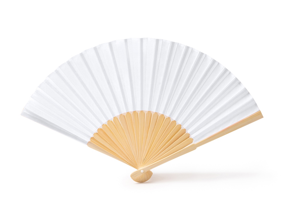 Веер с пластинами из бамбука и полотном из полиэстера.