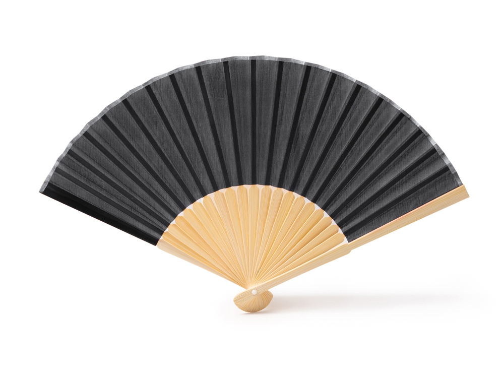Веер с пластинами из бамбука и полотном из полиэстера.