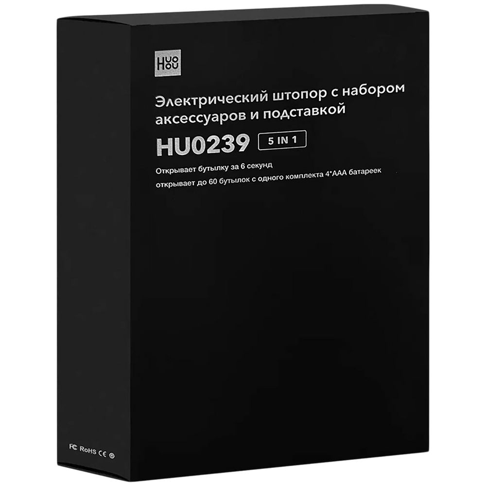 Электрический штопор HuoHou с набором аксессуаров и подставкой — незаменимый помощник для ценителей вина. Устройство позволяет всего за несколько секунд справиться с пробкой любой прочности и с легкостью открыть бутылку.