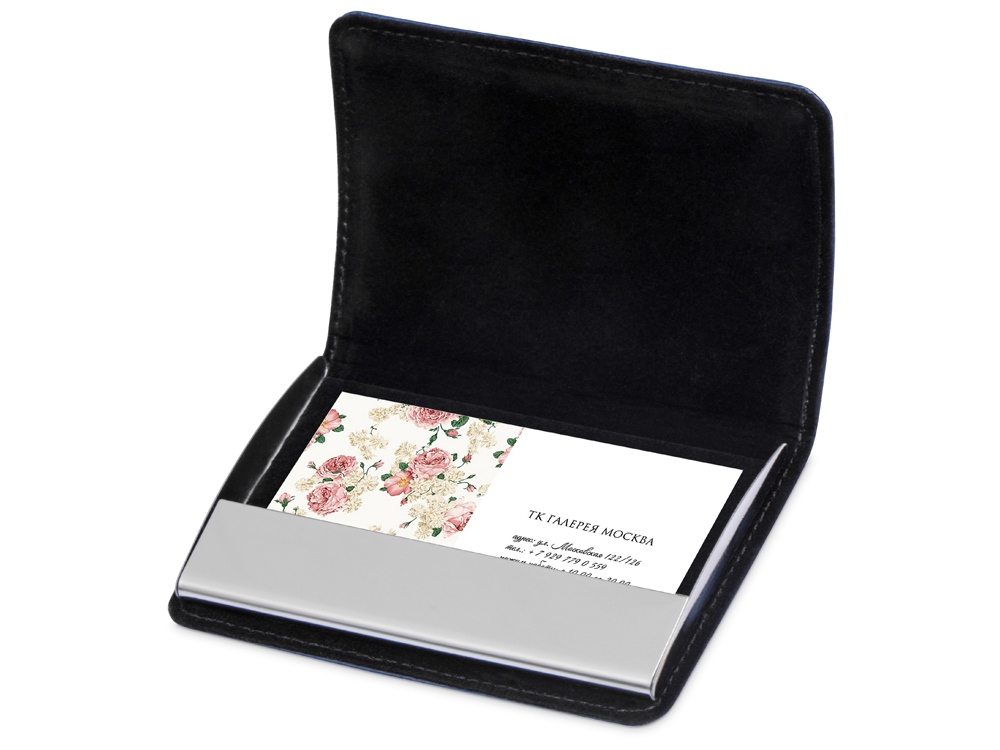 Лаконичный дизайн визитницы, выполненной из кожзама, нисколько не упрощает ее внешний вид, а, наоборот, дает хорошую возможность нанести фирменную символику или дарственную надпись на большой площади. На металлическую деталь визитницы также можно нанести изображение методом гравировки.