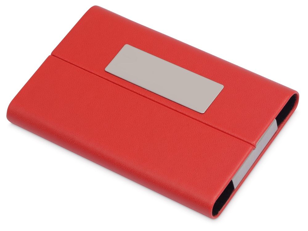 Компактная и легкая визитница выполнена в сочных цветах. Логотип можно нанести на металлическом шильде или на поверхности из искусственной кожи. Вмещает примерно 20 визиток.
