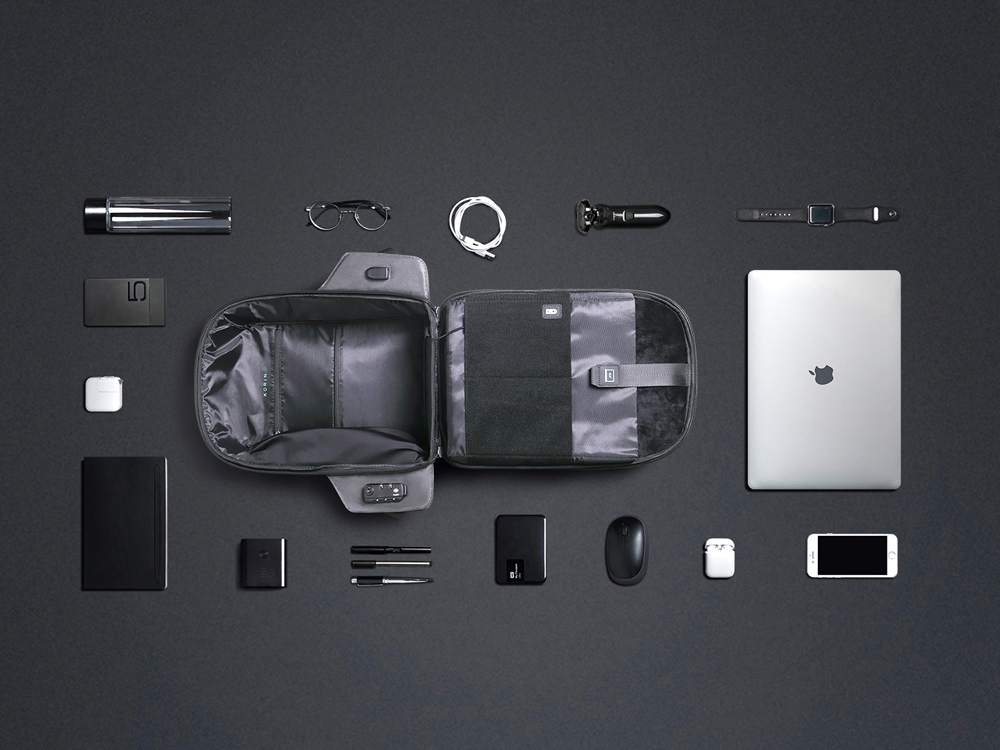 Новое поколение антикражных и водостойких рюкзаков для молодых и стильных! Легкий компактный городской рюкзак сделан из инновационного водоотталкивающего материала, устойчивого к порезам, трению и другим механическим воздействиям. - TSA замок - система умного хранения - все компактно размещается внутри рюкзака - USB выход - органайзер с карманами упорядоченного хранения - карманы на лямках для карт и других мелочей - потайной карман на спинке - боковой карманы на магнитах для бутылки или зонта - лямки регулируются по длине - ремень для крепления к ручку чемодана - дышащая сетчатая спинка с анатомическими вставками - возможность открытия рюкзака до 180 градусов - в комплекте коробка с ручкой