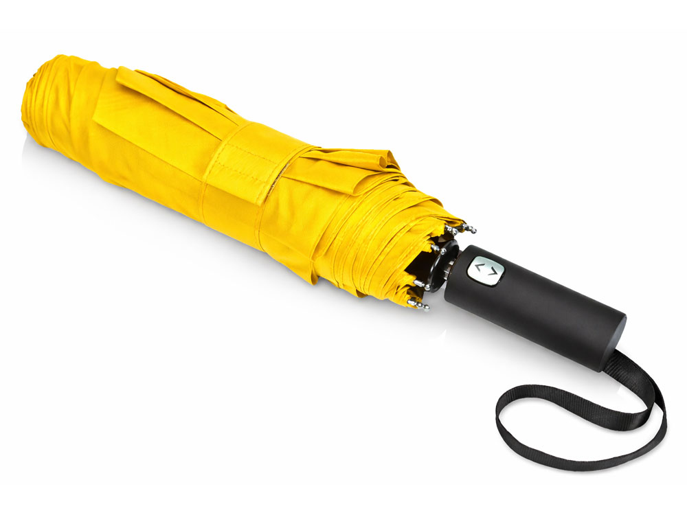 Купол этого складного зонта-автомата состоит из двух полотен и имеет большой диаметр 127 см. Прочный каркас и спицы из стекловолокна устоят при порывах ветра. Благодаря этому зонт служит надежным укрытием в самый сильный дождь. Закрывается в 3 сложения. Ручка обработана мягким покрытием soft-touch. Широкий хлястик для удобства персонализации.